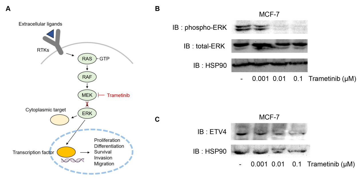 图 1. 曲美替尼对 MCF-7 细胞中 MAPK 信号下游效应因子 ETV4 的影响