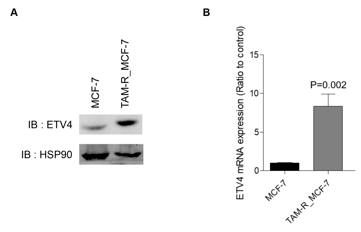 图 4. 与亲本 MCF-7 细胞相比,TAM-R_MCF-7 细胞中 ETV4 表达升高