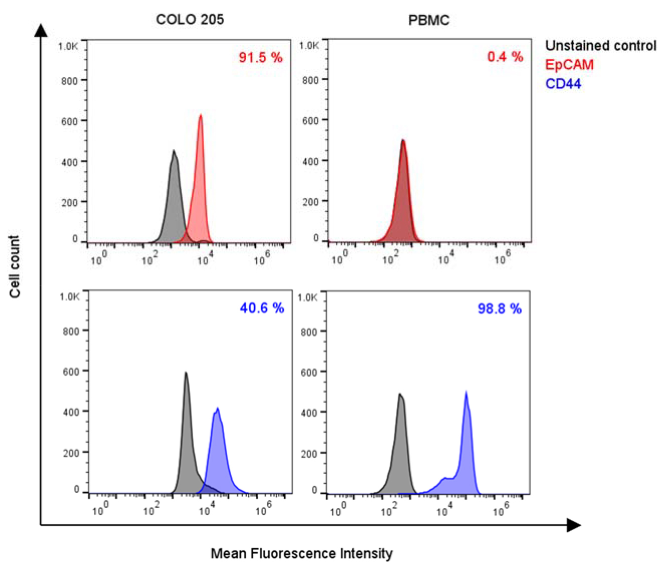 图5. COLO 205细胞与PBMCs的EpCAM和CD44表达情况